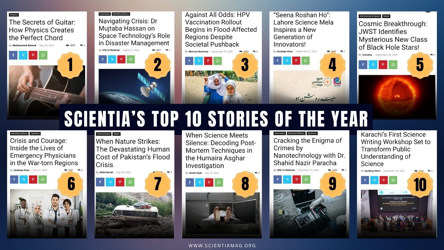 Together, these ten stories captured the spirit of a year marked by urgency, curiosity, and accountability. They showed why science journalism is not a luxury, but a necessity—especially in a region where scientific literacy can directly influence policy, justice, and survival. As we close 2025, Scientia Pakistan remains committed to asking better questions, amplifying credible voices, and making science accessible, relevant, and impossible to ignore.